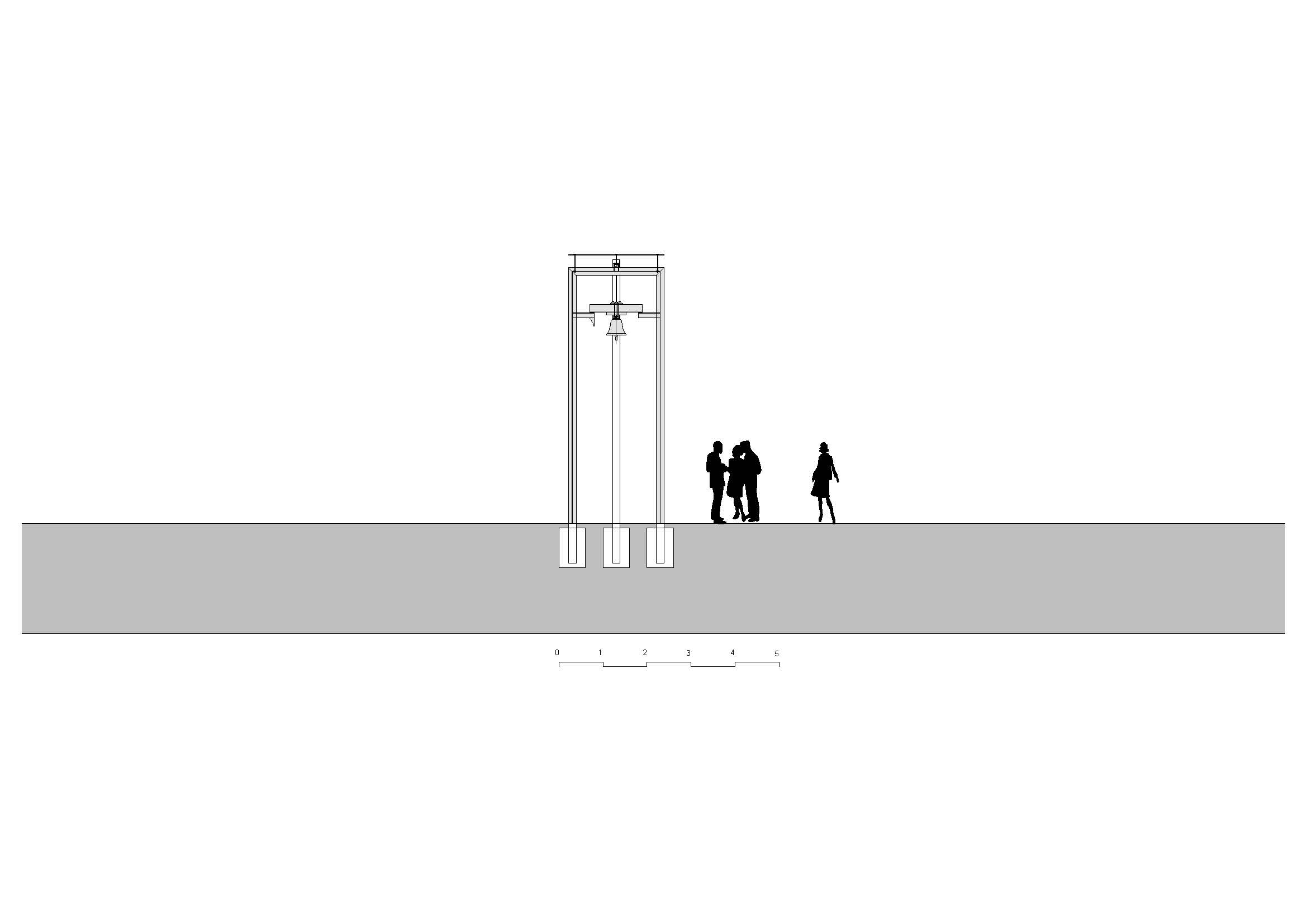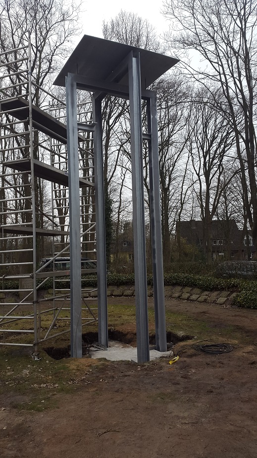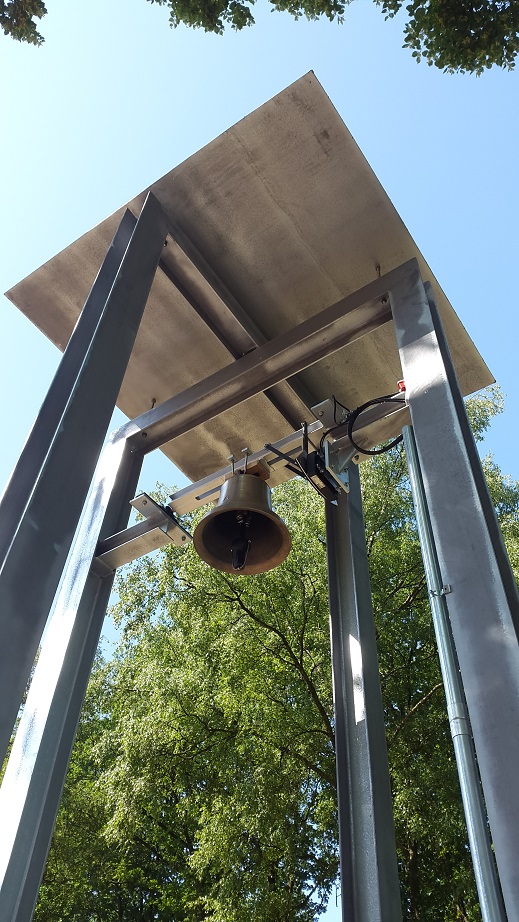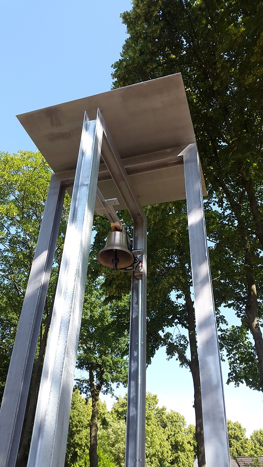 Die Stahlbügel wurden als eingespannte Stützen in Köcherfundamenten errichtet. Der Glockenstuhl hat eine Höhe von 6,00 m. Die Glocke wurde von der traditionsreichen Glockengießerei Rincker gefertigt.
