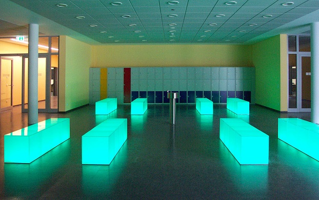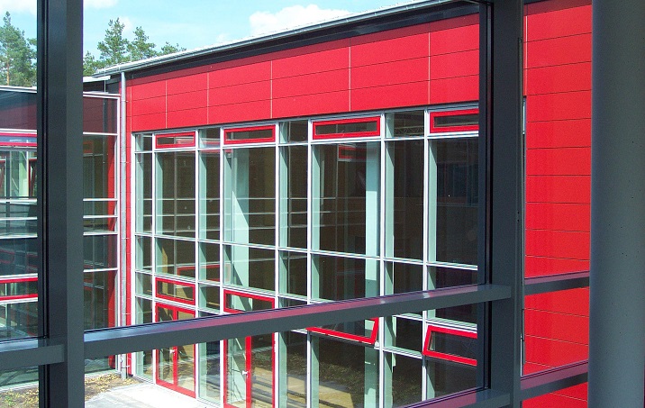 Da zu den Anforderungen auch eine kurze Bauzeit gehörte wurde überwiegend mit vorgefertigten Elementen gearbeitet. Nur so konnte die Schule innerhalb von einem Jahr fertig gestellt werden.