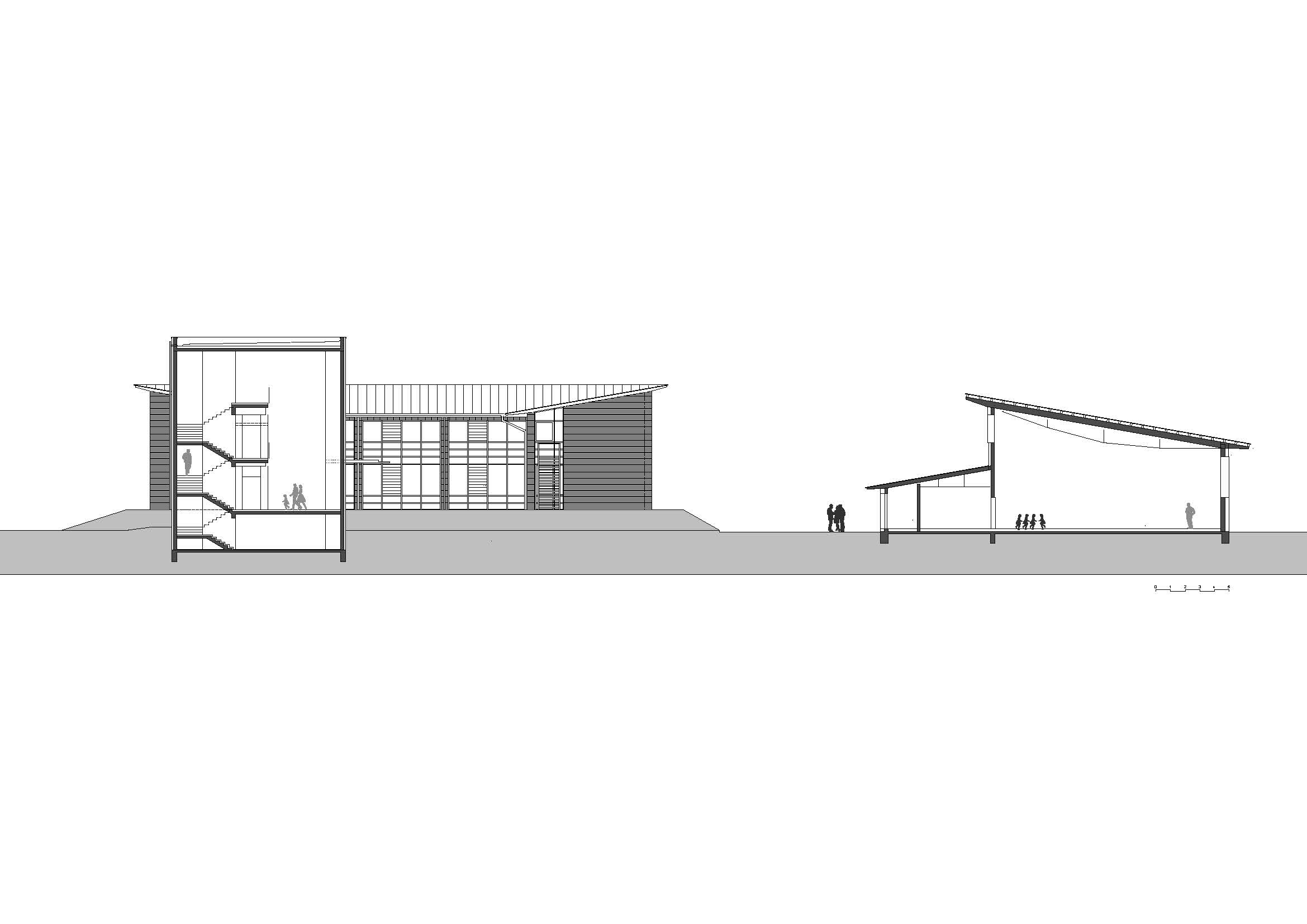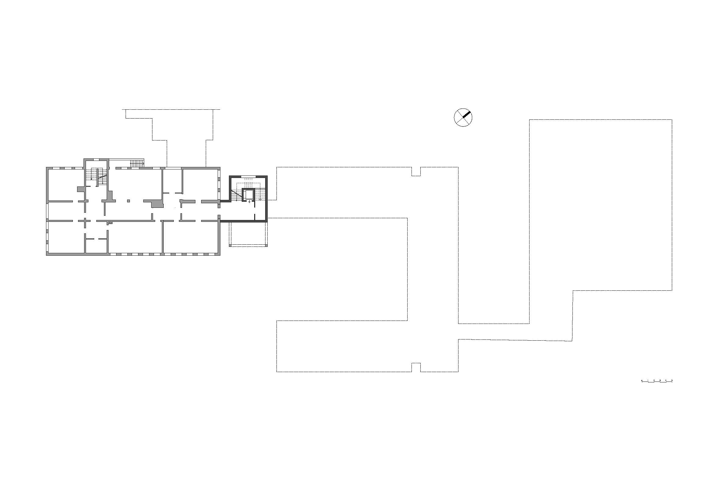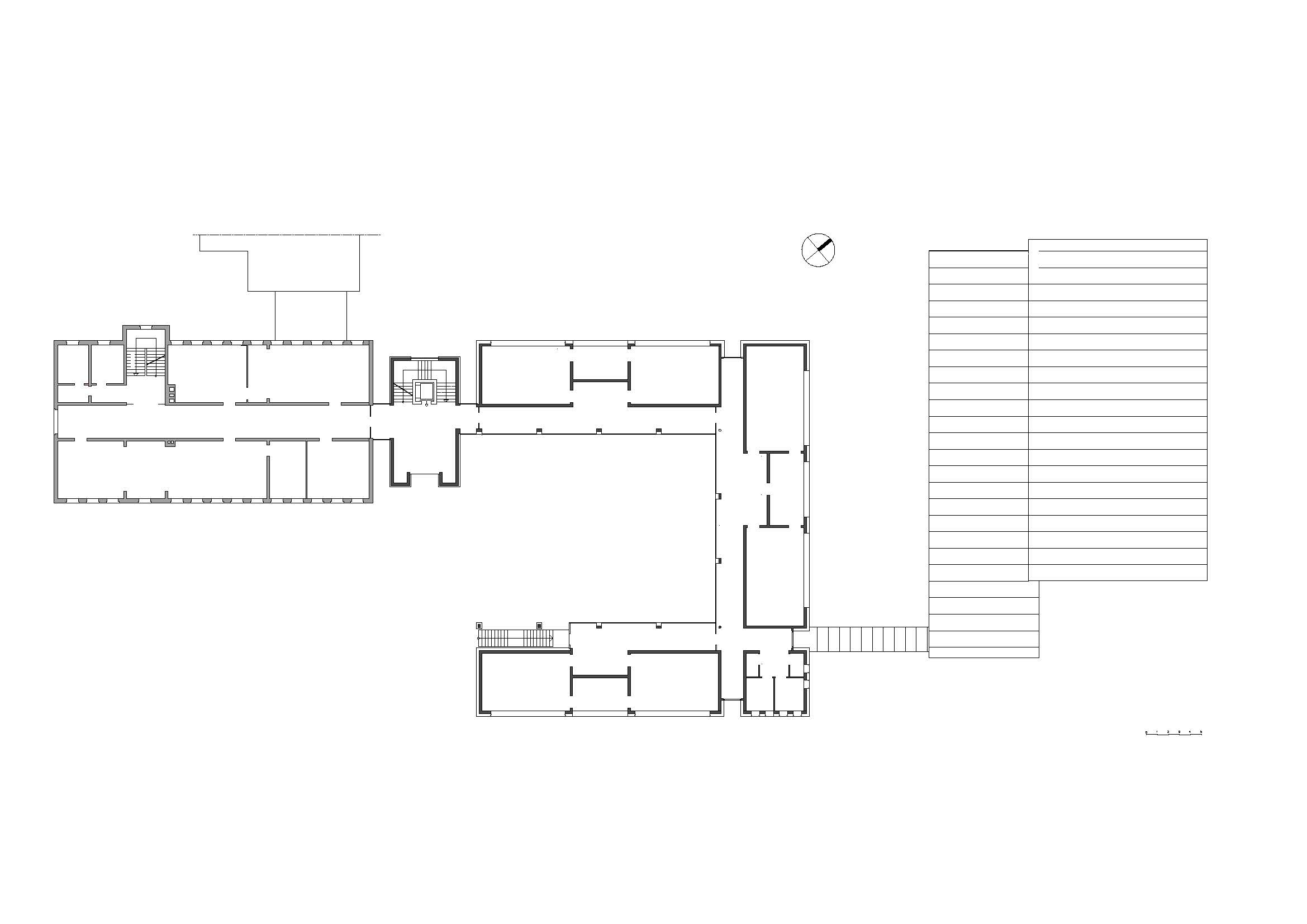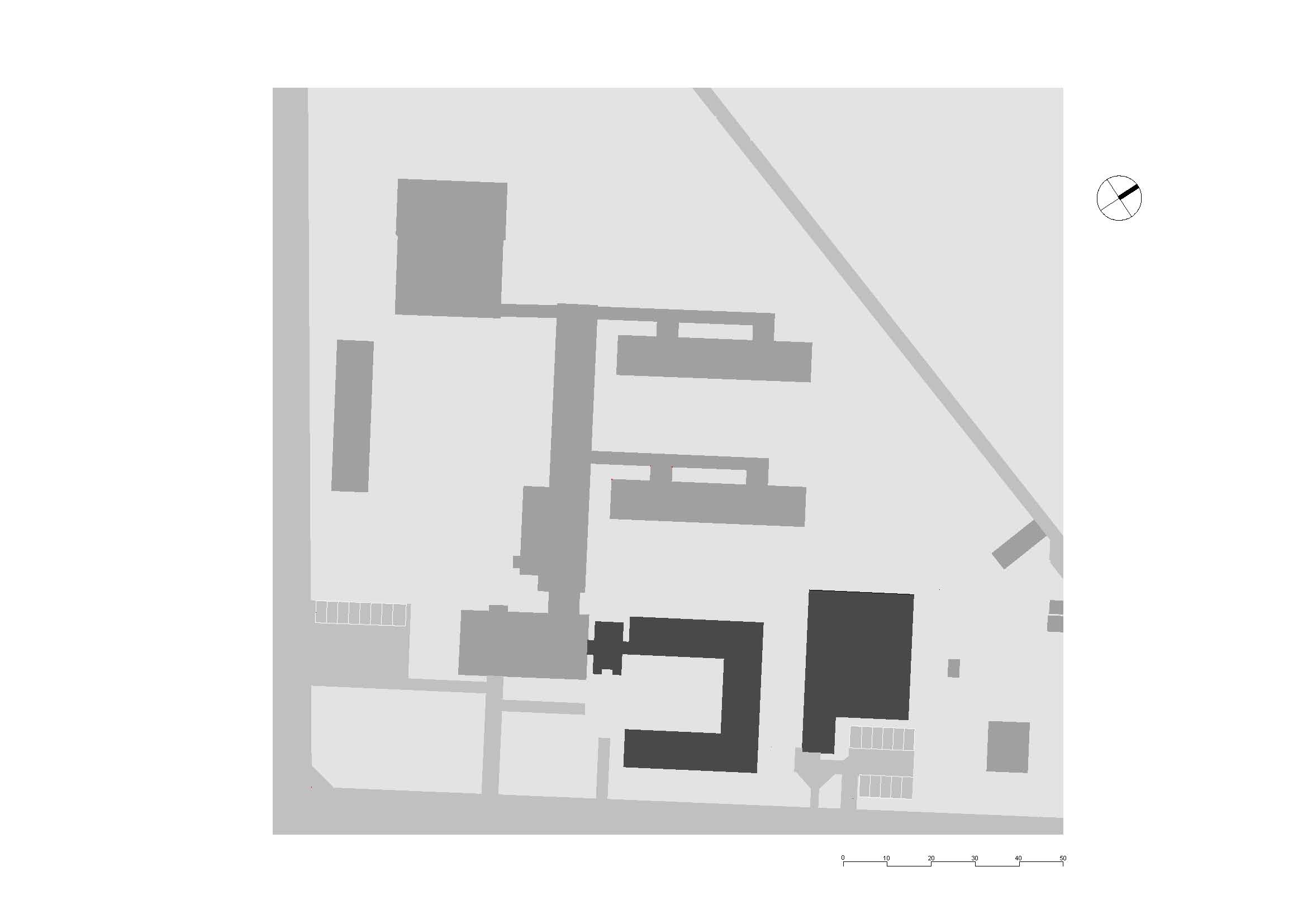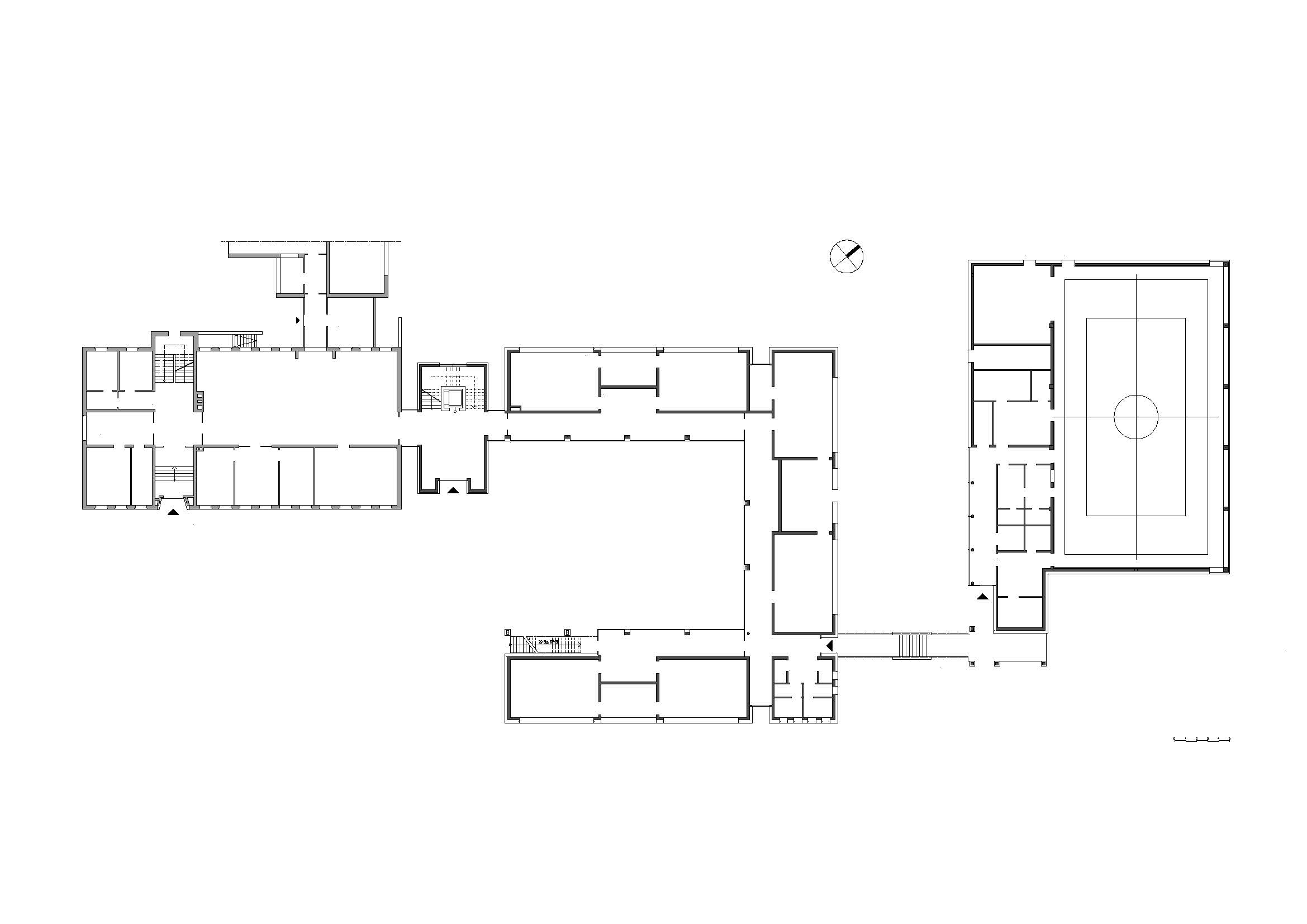 Durch die u-förmige Erweiterung ergibt sich eine intime Pausenhofatmosphäre. Lediglich am Ostgiebel des Altbaus wird ein markantes Verbindungsbauwerk zwischen Alt und Neu plaziert.