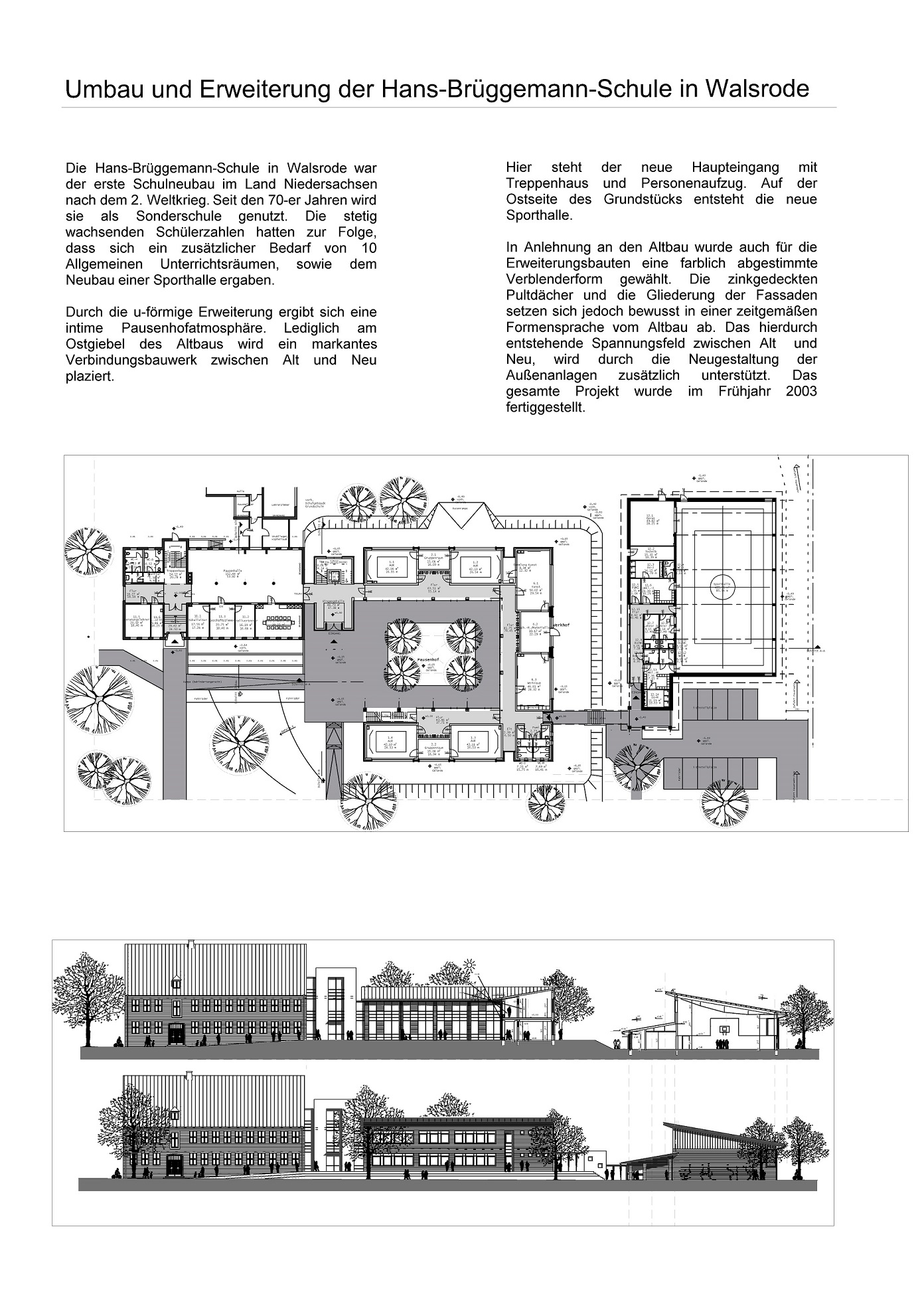Die Hans-Brüggemann-Schule in Walsrode war der erste Schulneubau im Land Niedersachsen nach dem 2. Weltkrieg. Seit den 70-er Jahren wird sie als Sonderschule genutzt. Die stetig wachsenden Schülerzahlen hatten zur Folge, dass sich ein zusätzlicher Bedarf von 10 Allgemeinen Unterrichtsräumen, sowie dem Neubau einer Sporthalle ergaben.